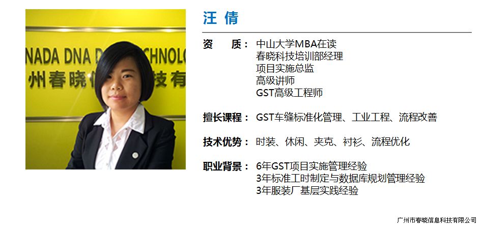 服装企业属于劳动密集型企业,近年来,缝制工人逐渐年轻化,技能水平整体呈下降趋势,随着流水模式的推行,全能型的工人越来越少,加上业内的竞争,工人的流动率也越来越高。基于这些因素,企业里面想要高效率、高品质的完成生产任务就需要建立 健全的培训体系,以满足生产需要。以往的培训都是师傅带徒弟的模式,往往十个师傅十个方法,无法保障每个作业员都高效率的产出,且现在,好的师傅也越来越少;整体培养成本太高。如何来解决这些问题,很多企业则运用GST系统建立的标准来进行统一的培训,将具有经济价值的方法通过 统一的平台来传输给生产工人,从而提升生产效率,保障品质。